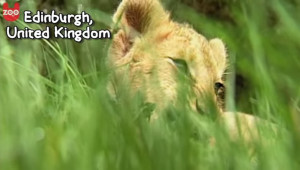 Edinburgh Zoo’s lion club plays with Monty the dog and rabbit