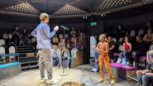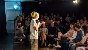 Abi Clarke’s “(Role) Model” sold out on the first Sunday of Fringe, delighting a young audience with its honest and humorous exploration of the desire to be seen in a positive light, even if it means revealing personal flaws.